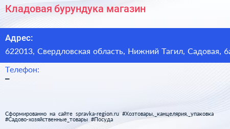 Кладовая бурундука, магазин по адресу 622013, Свердловская область, Нижний Тагил, Садовая, 6а в дальнейшем Организация, размещена в следующих категориях: