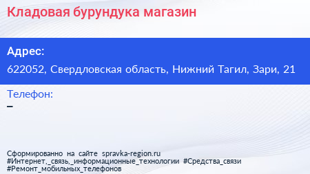 Кладовая бурундука, магазин по адресу 622052, Свердловская область, Нижний Тагил, Зари, 21 в дальнейшем Организация, размещена в следующих категориях: