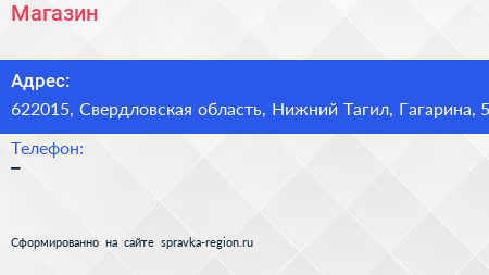 Магазин по адресу 622015, Свердловская область, Нижний Тагил, Гагарина, 5 в дальнейшем Организация, размещена в следующих категориях: