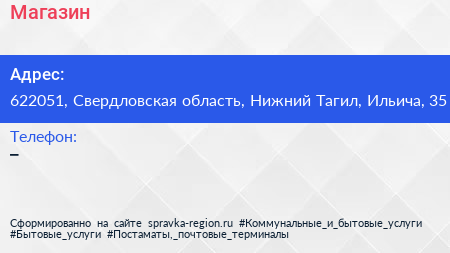 Магазин по адресу 622051, Свердловская область, Нижний Тагил, Ильича, 35 в дальнейшем Организация, размещена в следующих категориях: