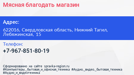 Мясная благодать, магазин по адресу 622016, Свердловская область, Нижний Тагил, Лебяжинская, 15 в дальнейшем Организация, размещена в следующих категориях: