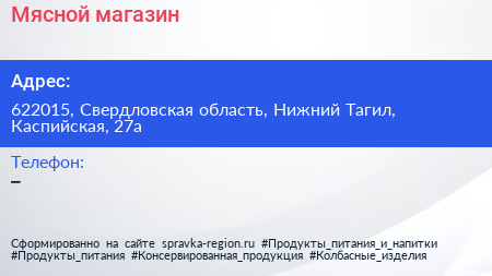 Мясной магазин по адресу 622015, Свердловская область, Нижний Тагил, Каспийская, 27а в дальнейшем Организация, размещена в следующих категориях: