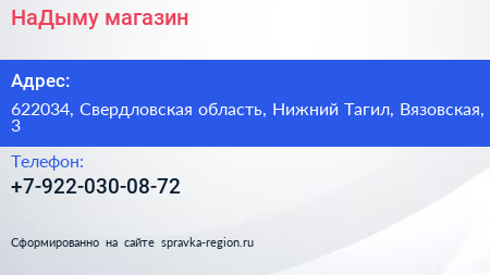 НаДыму, магазин по адресу 622034, Свердловская область, Нижний Тагил, Вязовская, 3 в дальнейшем Организация, размещена в следующих категориях:
