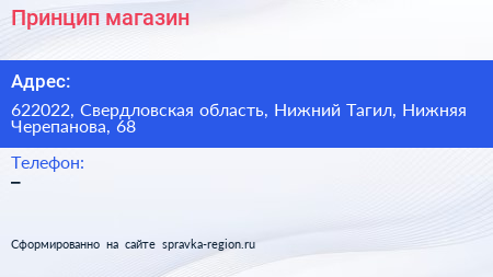 Принцип, магазин по адресу 622022, Свердловская область, Нижний Тагил, Нижняя Черепанова, 68 в дальнейшем Организация, размещена в следующих категориях: