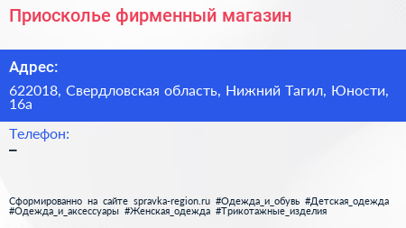 Приосколье, фирменный магазин по адресу 622018, Свердловская область, Нижний Тагил, Юности, 16а в дальнейшем Организация, размещена в следующих категориях: