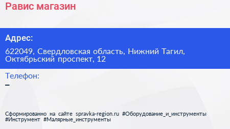Равис, магазин по адресу 622049, Свердловская область, Нижний Тагил, Октябрьский проспект, 12 в дальнейшем Организация, размещена в следующих категориях: