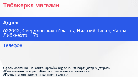 Табакерка, магазин по адресу 622042, Свердловская область, Нижний Тагил, Карла Либкнехта, 17а в дальнейшем Организация, размещена в следующих категориях: