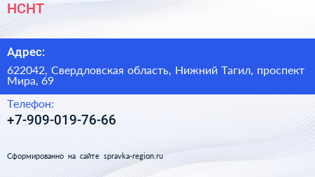 НСНТ по адресу 622042, Свердловская область, Нижний Тагил, проспект Мира, 69 в дальнейшем Организация, размещена в следующих категориях: