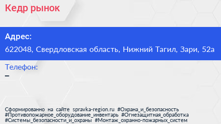 Кедр, рынок по адресу 622048, Свердловская область, Нижний Тагил, Зари, 52а в дальнейшем Организация, размещена в следующих категориях: