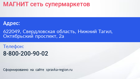 МАГНИТ, сеть супермаркетов по адресу 622049, Свердловская область, Нижний Тагил, Октябрьский проспект, 2а в дальнейшем Организация, размещена в следующих категориях: