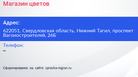 Магазин цветов по адресу 622051, Свердловская область, Нижний Тагил, проспект Вагоностроителей, 26Б в дальнейшем Организация, размещена в следующих категориях: