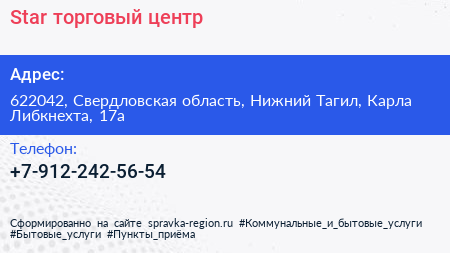 Star, торговый центр по адресу 622042, Свердловская область, Нижний Тагил, Карла Либкнехта, 17а в дальнейшем Организация, размещена в следующих категориях:
