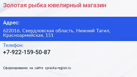 Золотая рыбка, ювелирный магазин по адресу 622016, Свердловская область, Нижний Тагил, Красноармейская, 151 в дальнейшем Организация, размещена в следующих категориях: