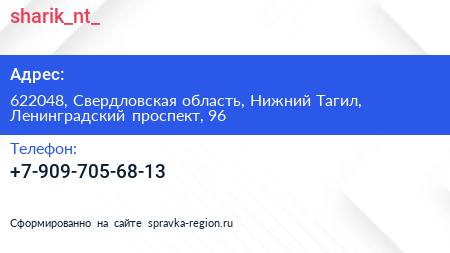 sharik_nt_ по адресу 622048, Свердловская область, Нижний Тагил, Ленинградский проспект, 96 в дальнейшем Организация, размещена в следующих категориях: