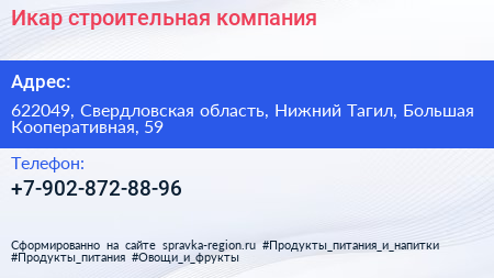 Икар, строительная компания по адресу 622049, Свердловская область, Нижний Тагил, Большая Кооперативная, 59 в дальнейшем Организация, размещена в следующих категориях: