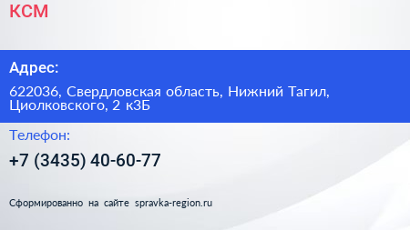 КСМ по адресу 622036, Свердловская область, Нижний Тагил, Циолковского, 2 к3Б в дальнейшем Организация, размещена в следующих категориях: