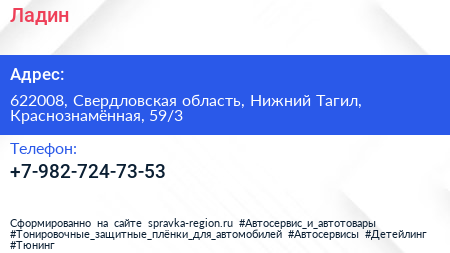 Ладин по адресу 622008, Свердловская область, Нижний Тагил, Краснознамённая, 59/3 в дальнейшем Организация, размещена в следующих категориях: