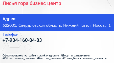Лисья гора, бизнес-центр по адресу 622001, Свердловская область, Нижний Тагил, Носова, 1 в дальнейшем Организация, размещена в следующих категориях: