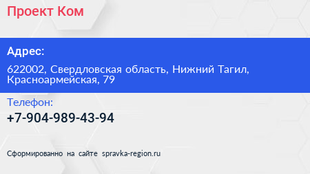 Проект.Ком по адресу 622002, Свердловская область, Нижний Тагил, Красноармейская, 79 в дальнейшем Организация, размещена в следующих категориях: