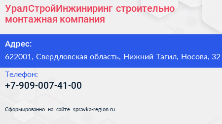 УралСтройИнжиниринг, строительно-монтажная компания по адресу 622001, Свердловская область, Нижний Тагил, Носова, 32 в дальнейшем Организация, размещена в следующих категориях: