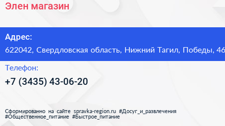 Элен, магазин по адресу 622042, Свердловская область, Нижний Тагил, Победы, 46 в дальнейшем Организация, размещена в следующих категориях: