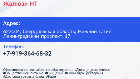 Жалюзи НТ по адресу 622004, Свердловская область, Нижний Тагил, Ленинградский проспект, 17 в дальнейшем Организация, размещена в следующих категориях: