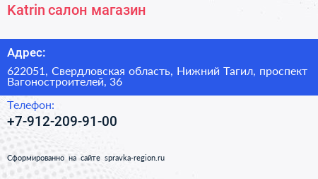 Katrin, салон-магазин по адресу 622051, Свердловская область, Нижний Тагил, проспект Вагоностроителей, 36 в дальнейшем Организация, размещена в следующих категориях: