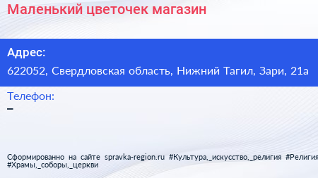 Маленький цветочек, магазин по адресу 622052, Свердловская область, Нижний Тагил, Зари, 21а в дальнейшем Организация, размещена в следующих категориях: