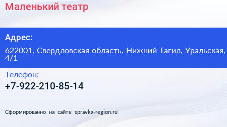 Маленький театр по адресу 622001, Свердловская область, Нижний Тагил, Уральская, 4/1 в дальнейшем Организация, размещена в следующих категориях: