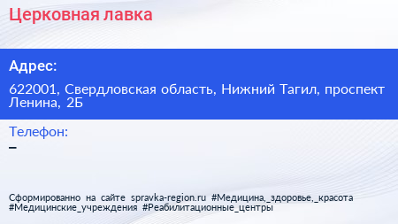 Церковная лавка по адресу 622001, Свердловская область, Нижний Тагил, проспект Ленина, 2Б в дальнейшем Организация, размещена в следующих категориях: