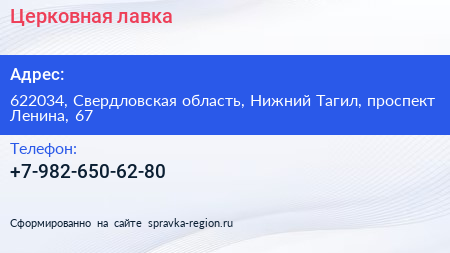 Церковная лавка по адресу 622034, Свердловская область, Нижний Тагил, проспект Ленина, 67 в дальнейшем Организация, размещена в следующих категориях: