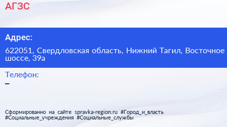 АГЗС по адресу 622051, Свердловская область, Нижний Тагил, Восточное шоссе, 39а в дальнейшем Организация, размещена в следующих категориях: