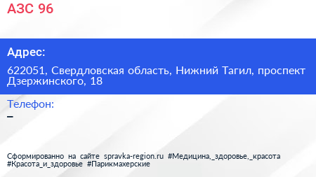 АЗС 96 по адресу 622051, Свердловская область, Нижний Тагил, проспект Дзержинского, 18 в дальнейшем Организация, размещена в следующих категориях: