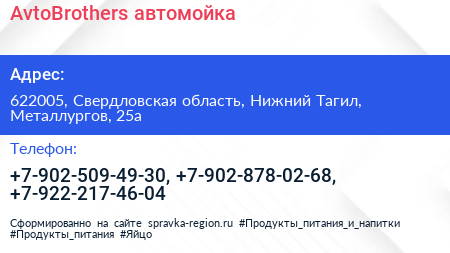 AvtoBrothers, автомойка по адресу 622005, Свердловская область, Нижний Тагил, Металлургов, 25а в дальнейшем Организация, размещена в следующих категориях: