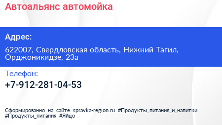 Автоальянс, автомойка по адресу 622007, Свердловская область, Нижний Тагил, Орджоникидзе, 23а в дальнейшем Организация, размещена в следующих категориях: