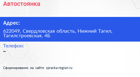 Автостоянка по адресу 622049, Свердловская область, Нижний Тагил, Тагилстроевская, 4Б в дальнейшем Организация, размещена в следующих категориях: