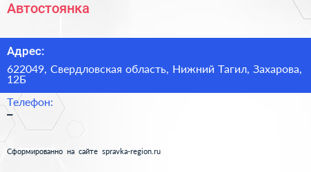 Автостоянка по адресу 622049, Свердловская область, Нижний Тагил, Захарова, 12Б в дальнейшем Организация, размещена в следующих категориях: