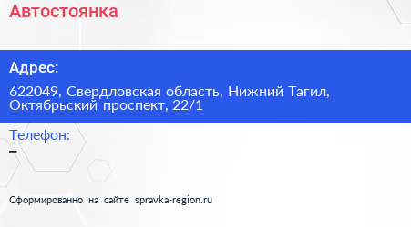 Автостоянка по адресу 622049, Свердловская область, Нижний Тагил, Октябрьский проспект, 22/1 в дальнейшем Организация, размещена в следующих категориях: