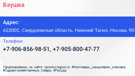 Бэушка по адресу 622001, Свердловская область, Нижний Тагил, Носова, 90 в дальнейшем Организация, размещена в следующих категориях: