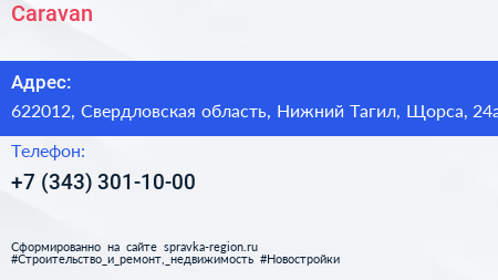 Caravan по адресу 622012, Свердловская область, Нижний Тагил, Щорса, 24а в дальнейшем Организация, размещена в следующих категориях: