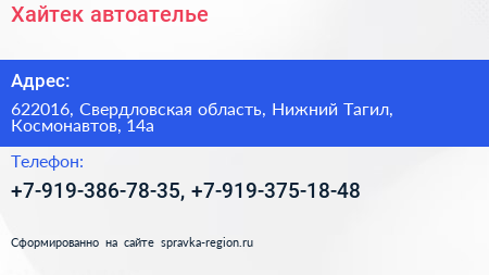 Хайтек, автоателье по адресу 622016, Свердловская область, Нижний Тагил, Космонавтов, 14а в дальнейшем Организация, размещена в следующих категориях: