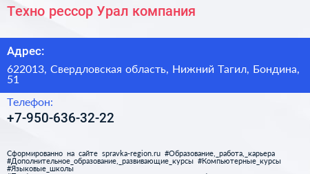 Техно рессор Урал, компания по адресу 622013, Свердловская область, Нижний Тагил, Бондина, 51 в дальнейшем Организация, размещена в следующих категориях: