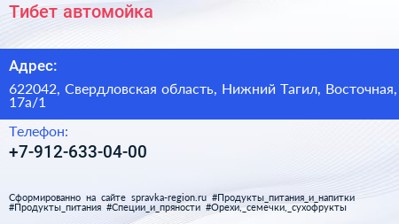 Тибет, автомойка по адресу 622042, Свердловская область, Нижний Тагил, Восточная, 17а/1 в дальнейшем Организация, размещена в следующих категориях: