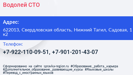 Водолей, СТО по адресу 622013, Свердловская область, Нижний Тагил, Садовая, 1 к2 в дальнейшем Организация, размещена в следующих категориях: