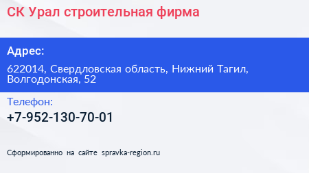 СК Урал, строительная фирма по адресу 622014, Свердловская область, Нижний Тагил, Волгодонская, 52 в дальнейшем Организация, размещена в следующих категориях: