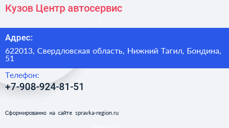 Кузов Центр, автосервис по адресу 622013, Свердловская область, Нижний Тагил, Бондина, 51 в дальнейшем Организация, размещена в следующих категориях: