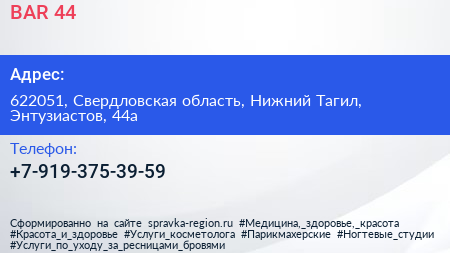 BAR 44 по адресу 622051, Свердловская область, Нижний Тагил, Энтузиастов, 44а в дальнейшем Организация, размещена в следующих категориях: