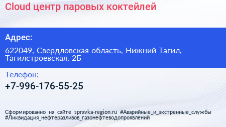 Cloud, центр паровых коктейлей по адресу 622049, Свердловская область, Нижний Тагил, Тагилстроевская, 2Б в дальнейшем Организация, размещена в следующих категориях: