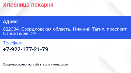 Хлебница, пекарня по адресу 622034, Свердловская область, Нижний Тагил, проспект Строителей, 29 в дальнейшем Организация, размещена в следующих категориях:
