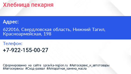 Хлебница, пекарня по адресу 622016, Свердловская область, Нижний Тагил, Красноармейская, 198 в дальнейшем Организация, размещена в следующих категориях: